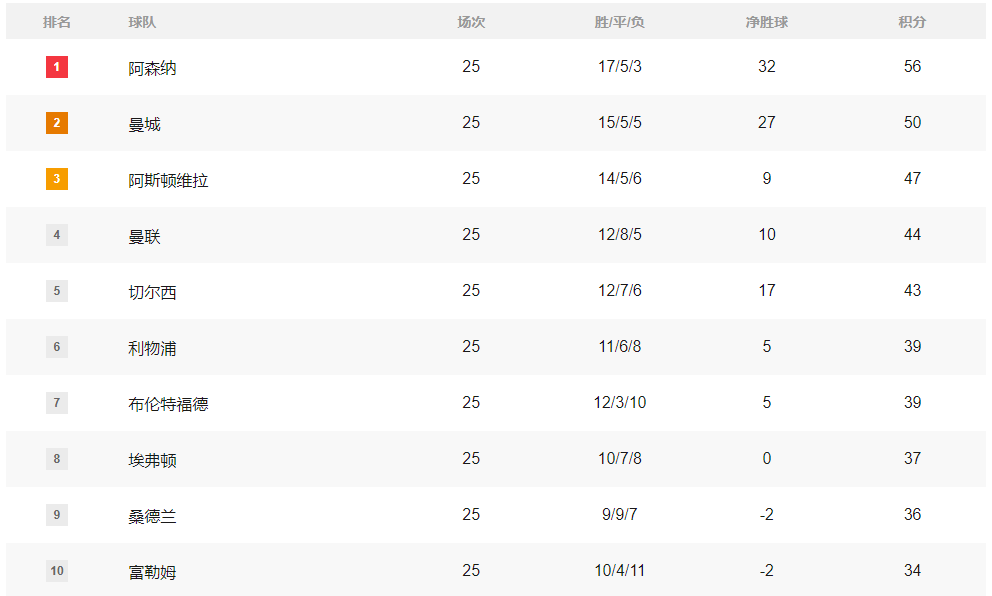 积分榜:英超维拉利物浦惨掉队 西甲皇马1分死咬巴萨
